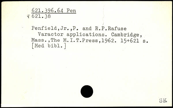 Penfield,Jr. ,P. and R.P.Rafuse Varactor applications. Cambridge, Mass.,The M.I.T.Press,1962.