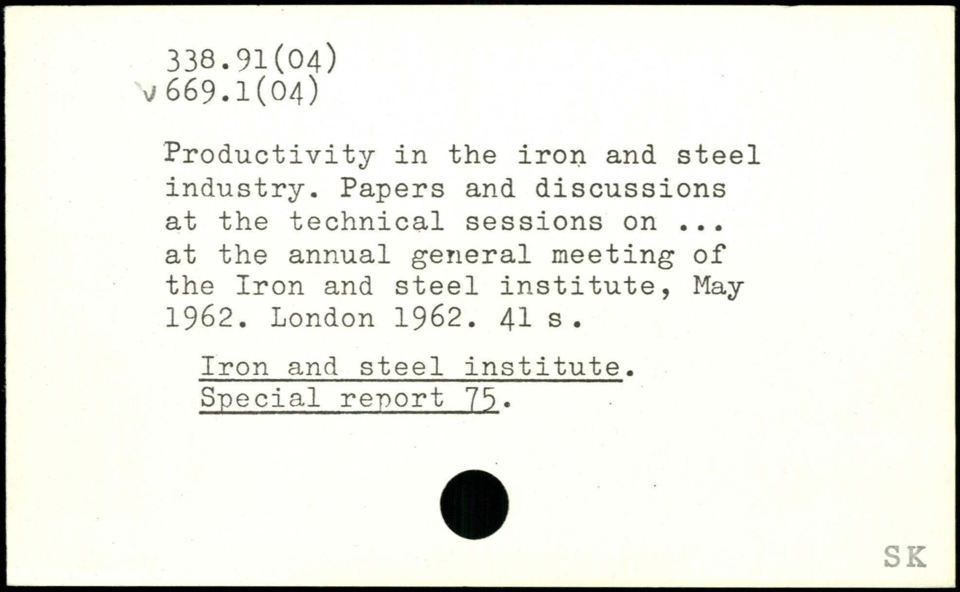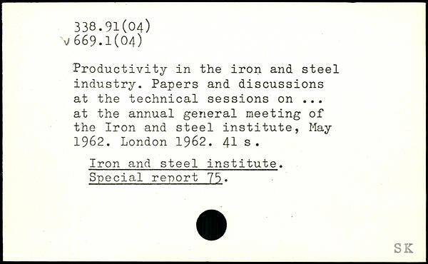 Productivity in the iron and steel industry. Papers and discussions at the technical sessions on ... at the annual general meeting of the Iron and steel institute, May 1962.
