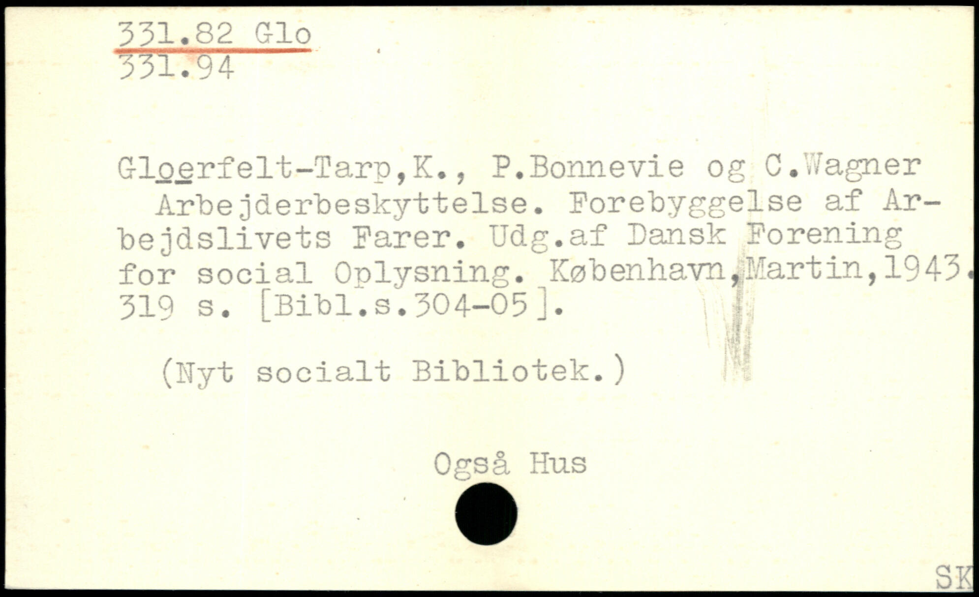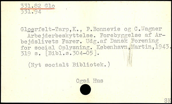 C-loerfelt-Tarp,K., P.Bonnevie og C.Wagner Arbejderbeskyttelse. Forebyggelse af Arbejdslivets Farer. Udg.af Dansk Forening for social Oplysning. KøbenhavniMartin,1943