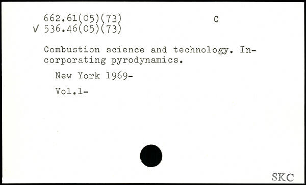 Combustion science and technology. Incorporating pyrodynamics. Hew York 1969- Vol.l-