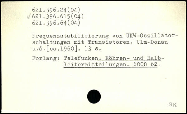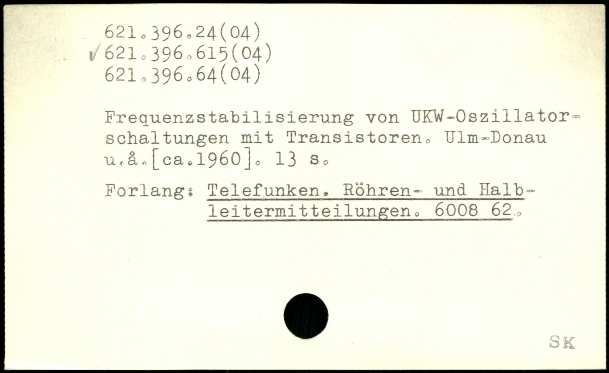 Frequenzstabilisierung von UKW-Oszillator-Schaltungen mit Transistoren, Ulm-Donau .li f 3/ t> ^ Cä e 1960].