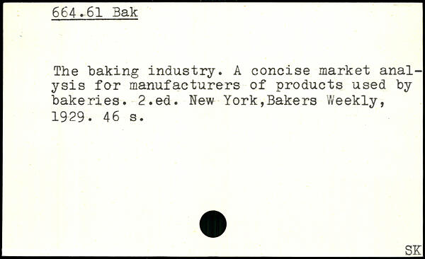 The baking industry. A concise market analysis for manufacturers of products used by bakeries.