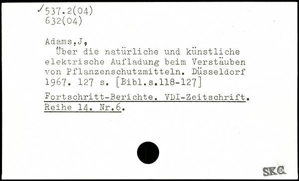 Über die natürliche und künstliche elektrische Aufladung beim Verstauben von Pflanzenschutzmitteln. Düsseldorf 1967.