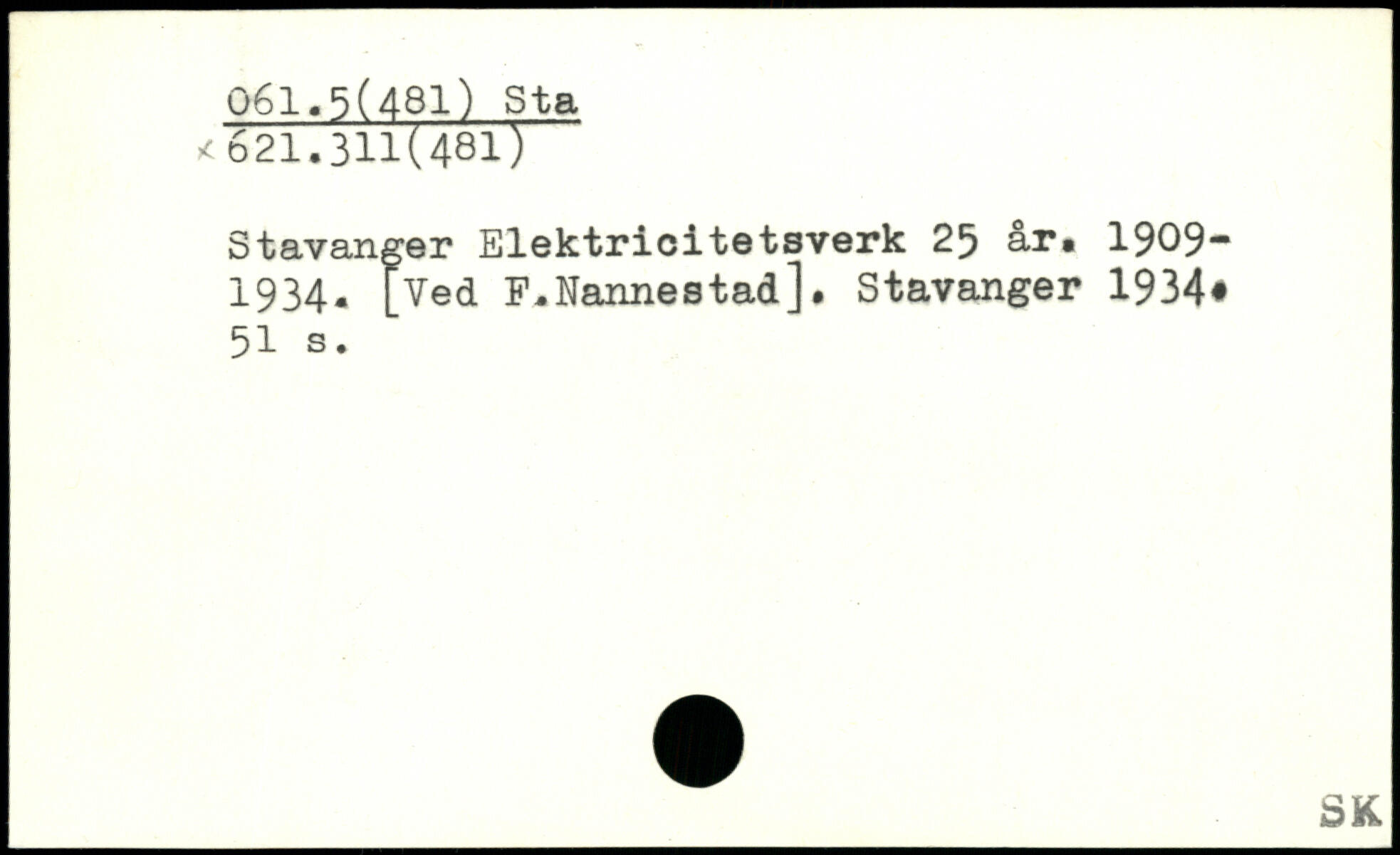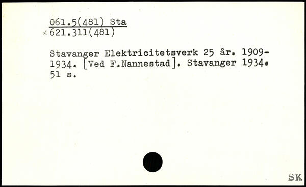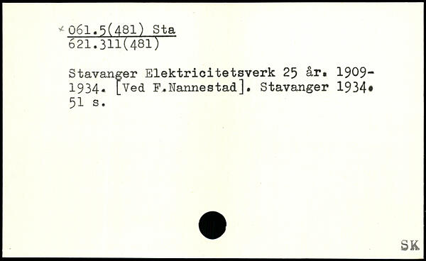 Stavanger Elektricitetsverk 25 år. 1909-1934. [Ved F.Nannestad]. Stavanger 1934#