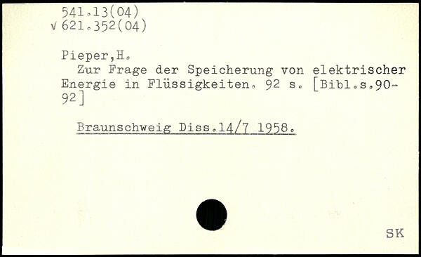 Zur Frage der Speicherung von elektrischer Energie in Flüssigkeiten,