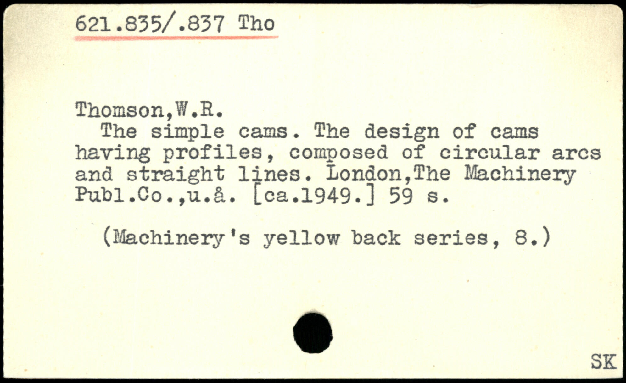 The simple cams. The design of cams having profiles, composed of circular arcs and straight lines. London,The Machinery Publ.Co.,u.&. [ca.1949.]