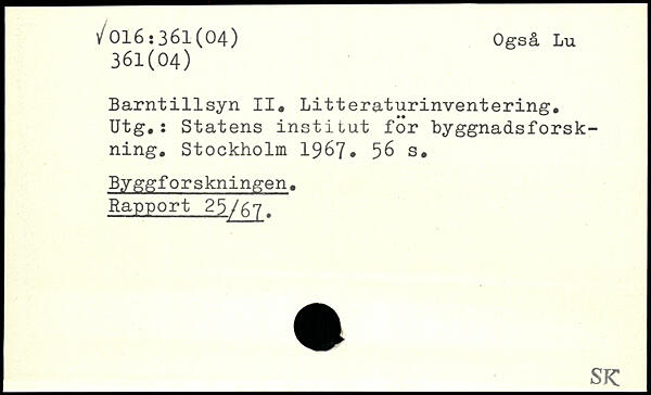 Barntillsyn II. Litteraturinventering. Utg.: Statens institut för byggnadsforsk-ning.