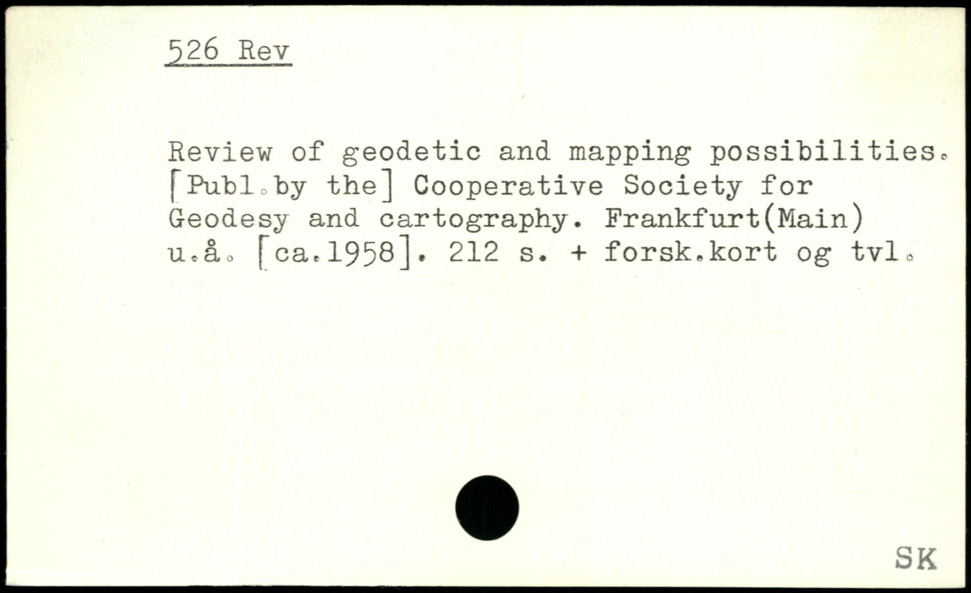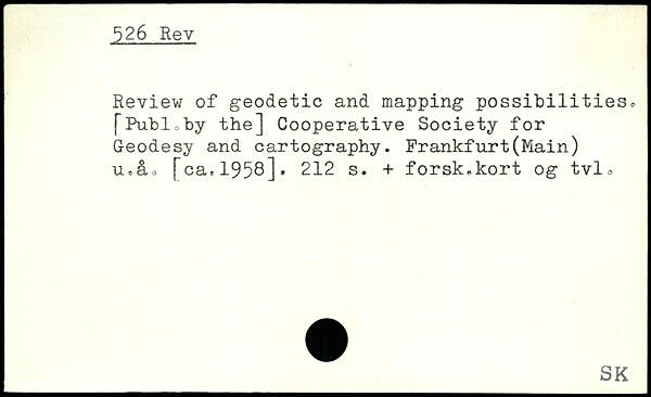 Review of geodetic and mapping possibilities. [Publcby the] Cooperative Society for Geodesy and cartography. Frankfurt(Main) uta. [ca.1958]