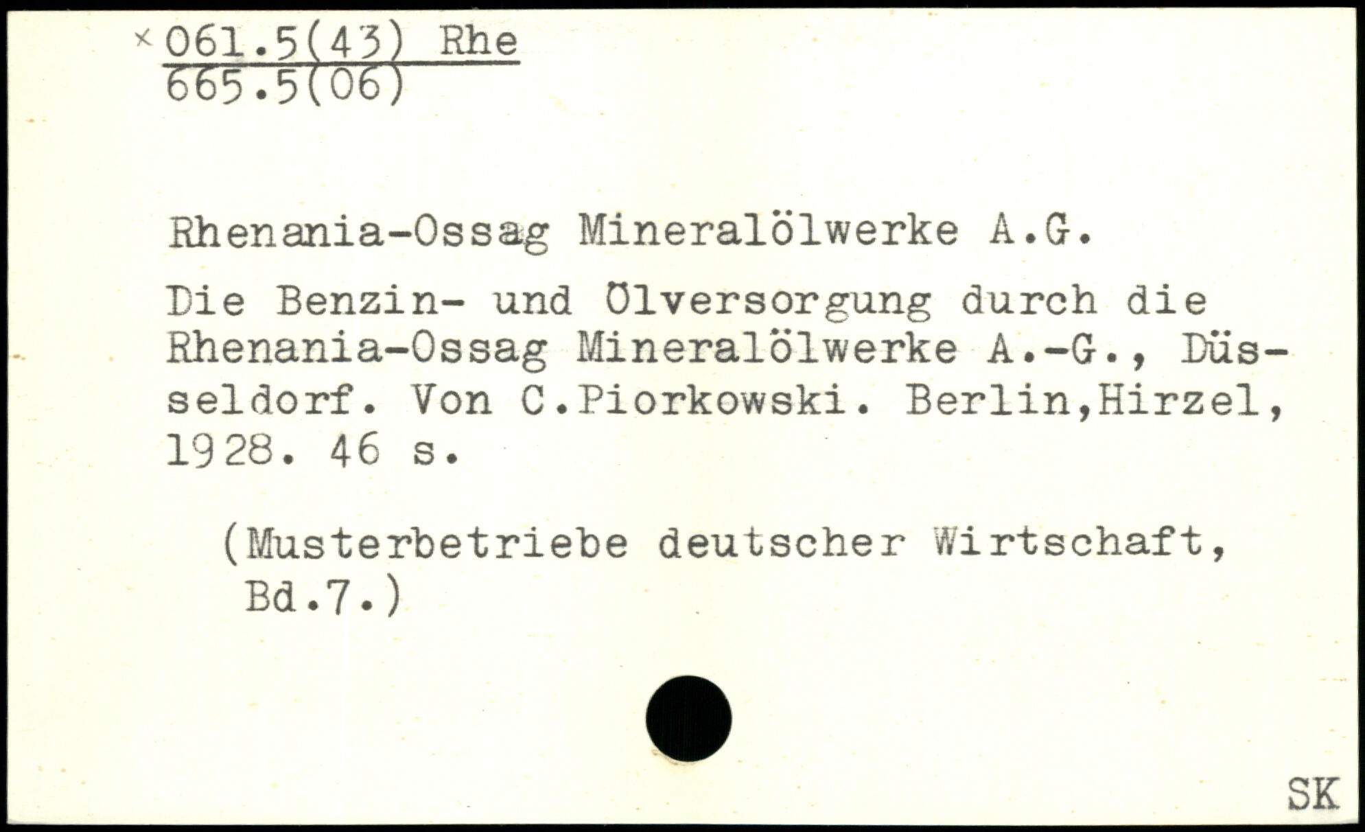 Rhenania-Ossag Mineralölwerke A.G. Die Benzin- und Ölversorgung durch die Rhenania-Ossag Mineralölwerke A.-G., Düsseldorf. Von C.Piorkowski.