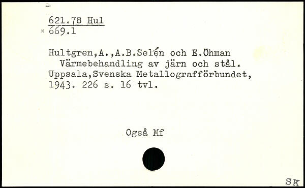Hultgren,A. ,A.B.Selen och E.öhman Värmebehandling av järn och stål.