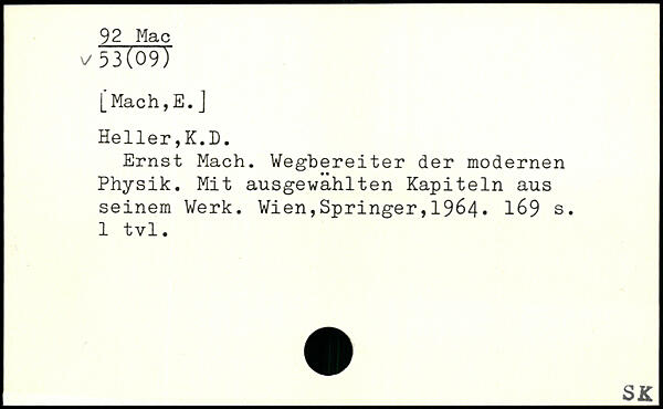 [Mach,E.J Heller,K.D. Ernst Mach. Wegbereiter der modernen Physik. Mit ausgewahlten Kapiteln aus seinem Werk.