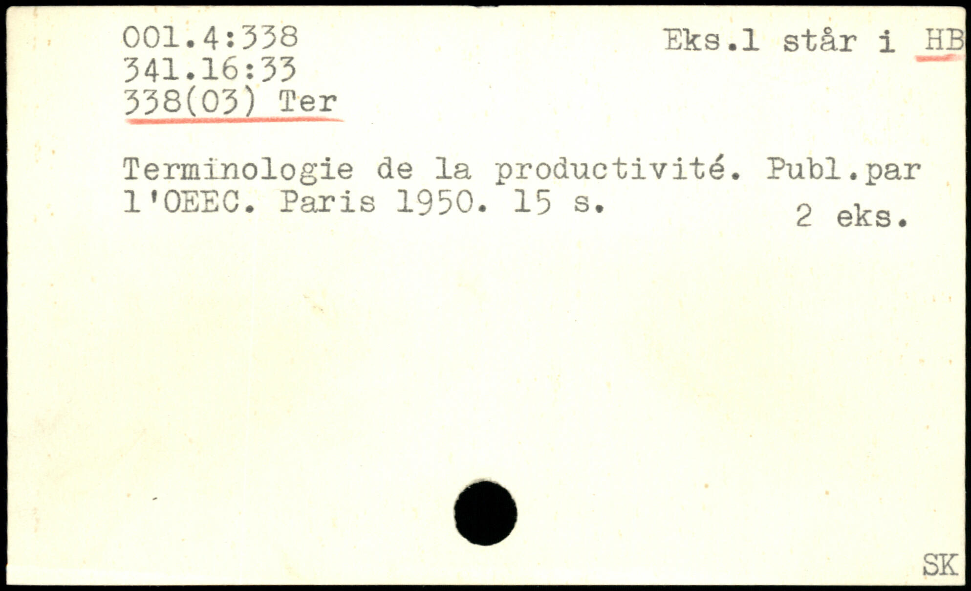 Terminologie de la productivité. Publ.par l'OEEC.