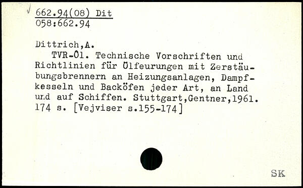 TVR-Ol. Technische Vorschriften und Richtlinien für ölfeurungen mit Zerstäubungsbrennern an Heizungsanlagen, Dampfkesseln und Backöfen jeder Art, an Land und auf Schiffen.