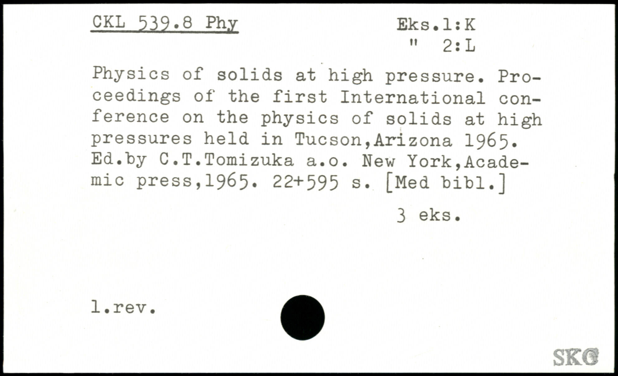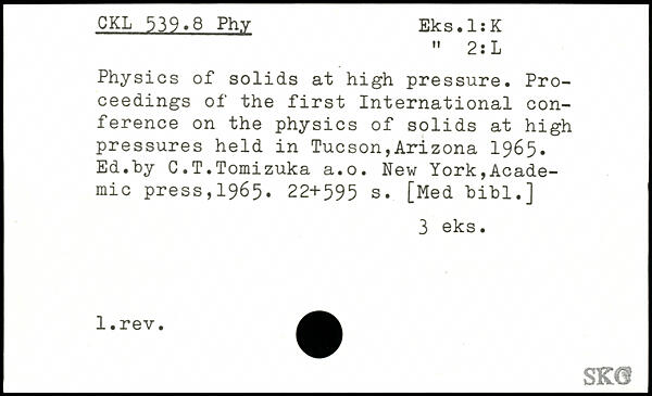 Physics of solids at high pressure. Proceedings of the first International conference on the physics of solids at high pressures held in Tucson,Arizona 1965. Ed.by C.T.Tomizuka a.o.