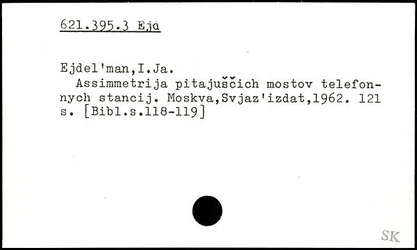 Ejdel'man,I.Ja. Assimmetrija pitajuscich mostov telefonny ch stancij. Moskva,Svjaz’izdat,1962.