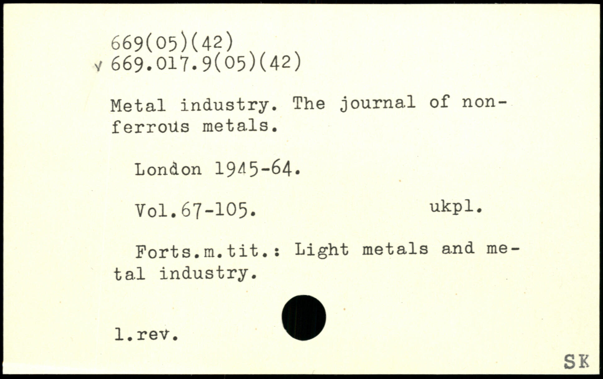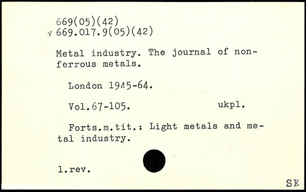 Metal industry. The journal of non-ferroUs metals. London 19^5-64,