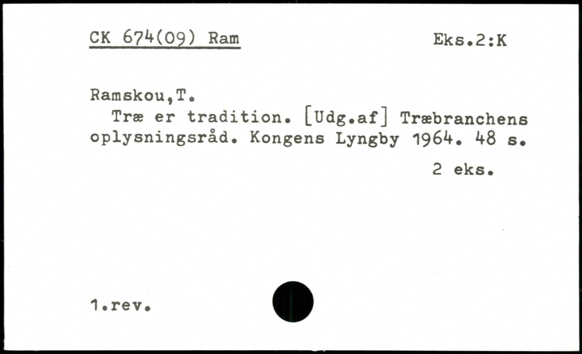 Træ er tradition. [Udg.af] Træbranchens oplysningsråd. Kongens Lyngby 1964.