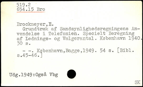 Grundtræk af Sandsynlighedsregningens Anvendelse i Telefonien. Specielt Beregning af Lednings- og Vælgerantal.