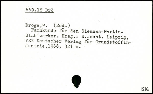 Fachkunde für den Siemens-Martin-Stahlwerker. Hrsg.: R.Jecht. Leipzig, VEB Deutscher Verlag für GrundstoffIndustrie ,1966.