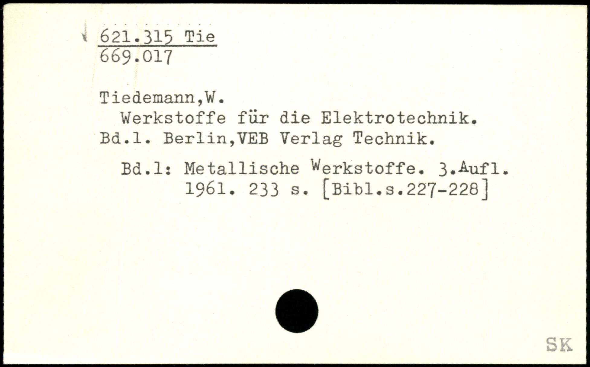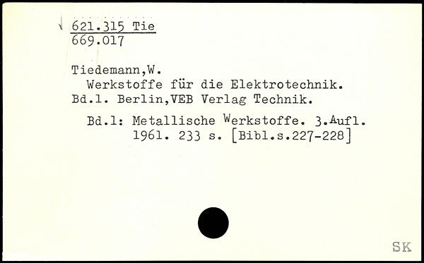 Werkstoffe für die Elektrotechnik. Bd.l. Berlin,VEB Verlag Technik. Bd.l: Metallische Werkstoffe.