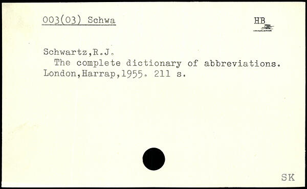 Jr Schwartz,R,J, The complete dictionary of abbreviations.