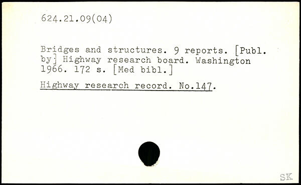 Bridges and structures. 9 reports. [Puhl, "by] Highway research "board.