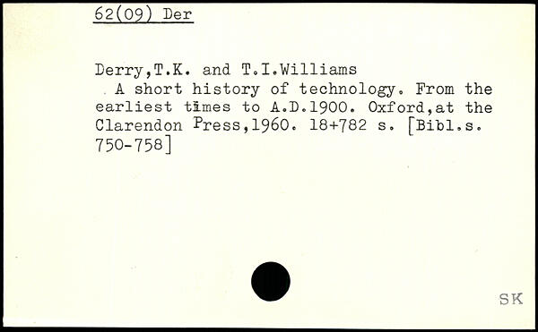 A short history of technology. From the earliest times to A.D.1900. Oxford,at the Clarendon Press,1960.