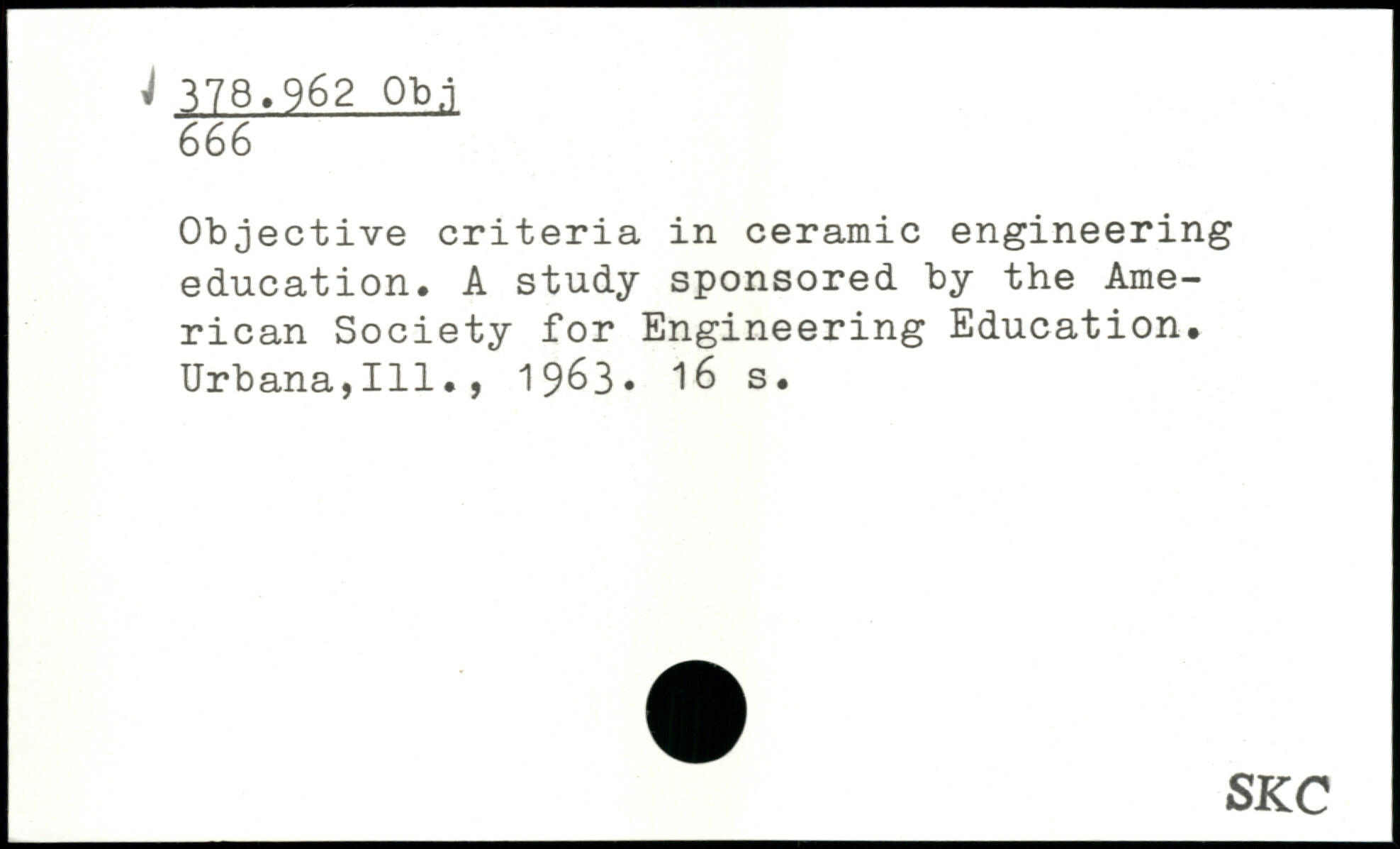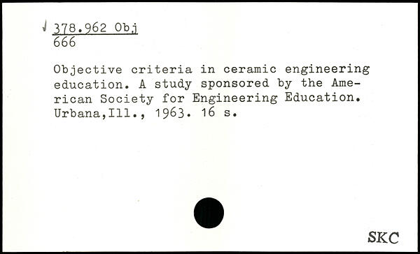 Objective criteria in ceramic engineering education. A study sponsored by the American Society for Engineering Education. Urbana,Ill., 19^3