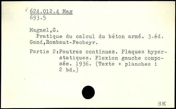 Pratique du calcul du béton armé. 3.éd. G and,Rombaut-Fe cheyr. Partie 2:Poutres continues. Plaques hyper-. statiques. Flexion gauche composée. 1936. (Texte + planches i 2 bd.)