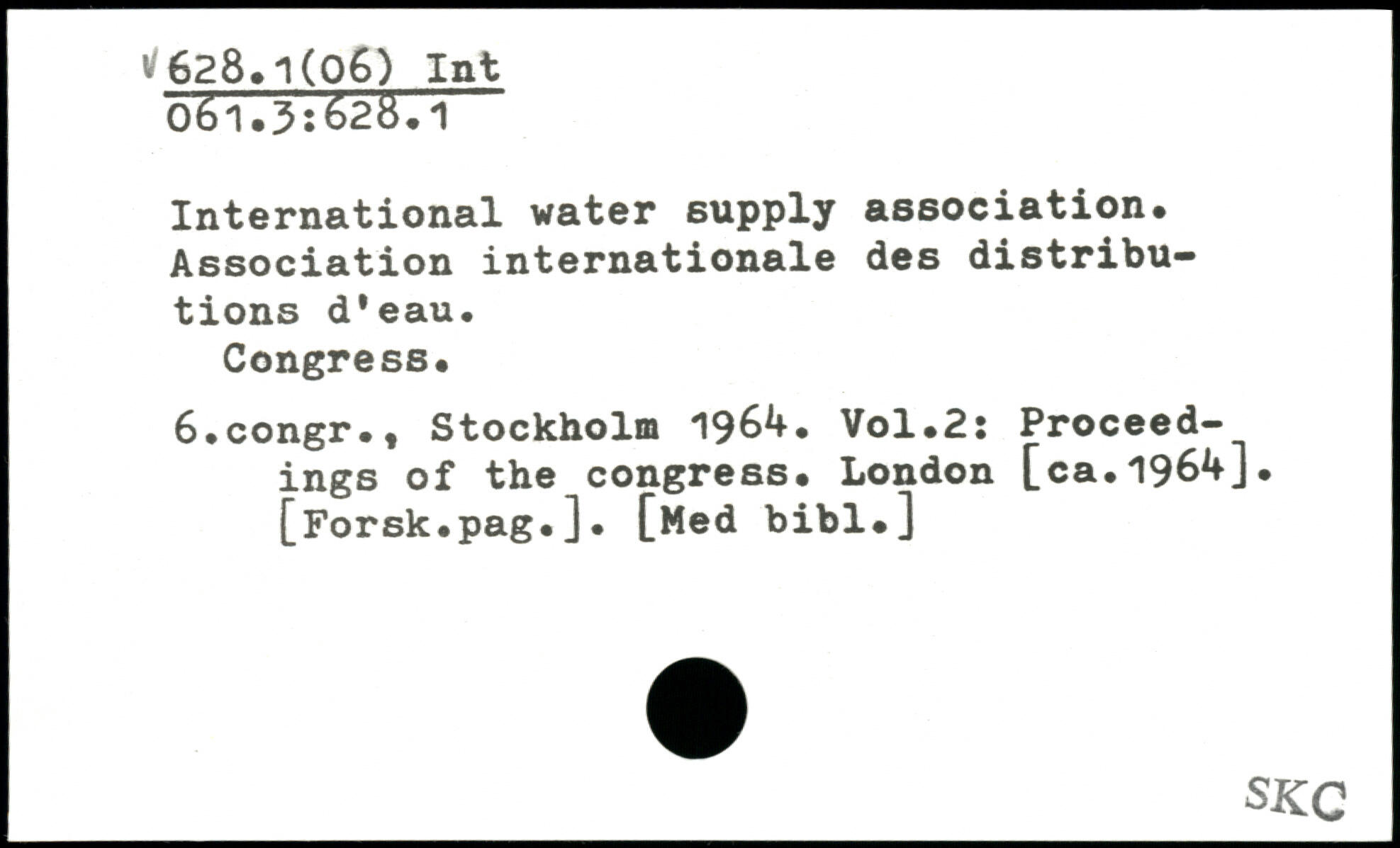 International water supply association. Association internationale des distributions d'eau. Congress. 6.congr.