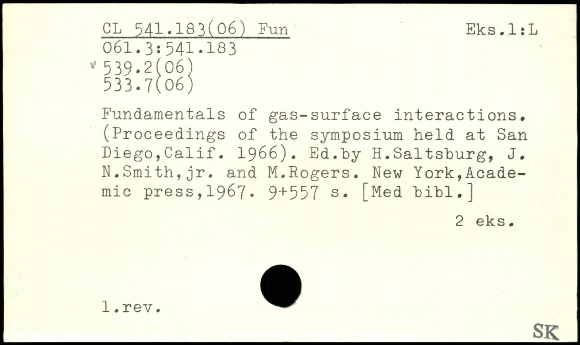 Fundamentals of gas-surface interactions. (Proceedings of the symposium held at San Diego,Calif. 1966). Ed.by H.Saltsburg, J. N.Smith,jr. and M.Rogers.