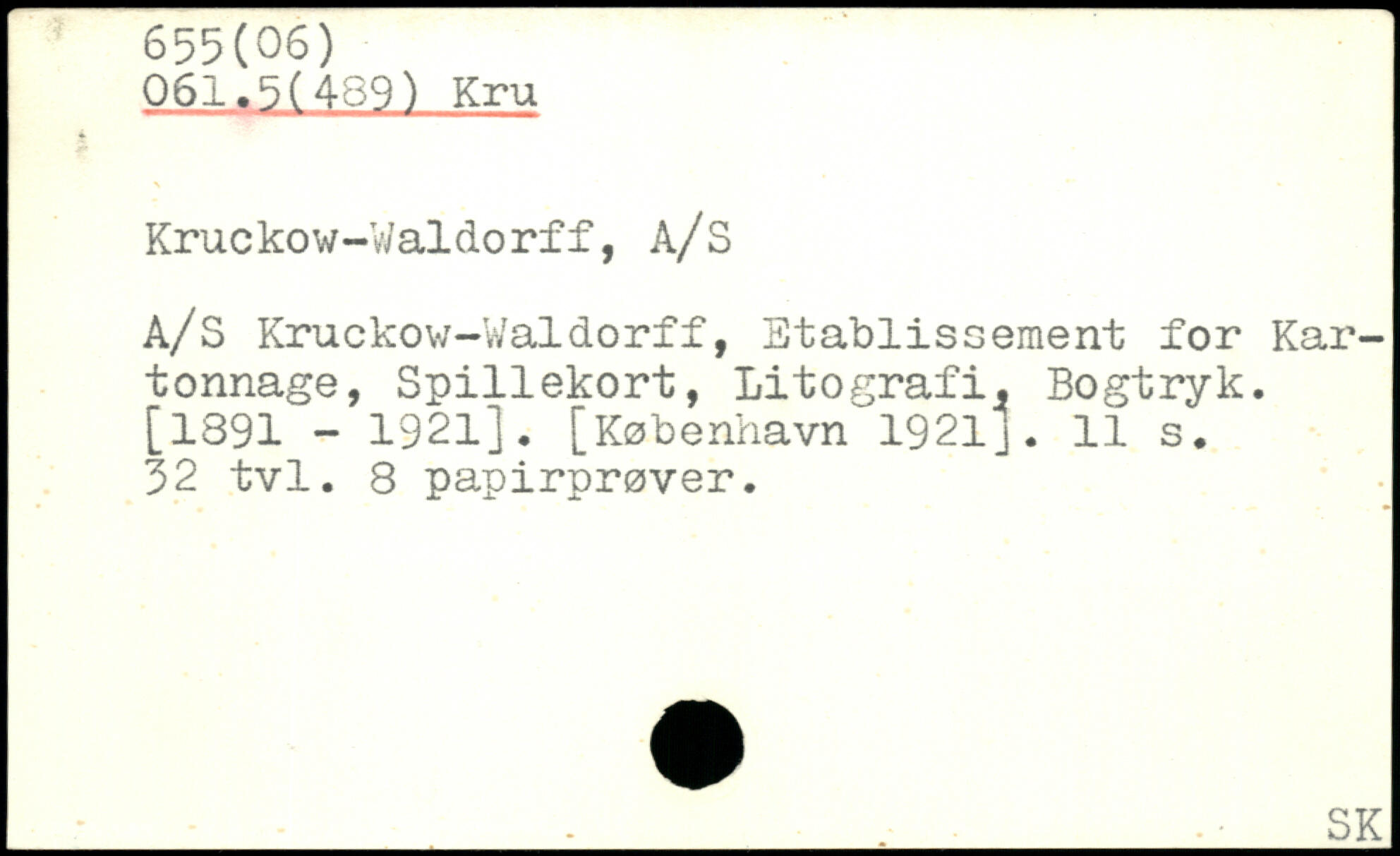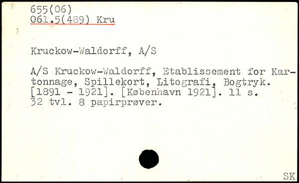 A/S Kruckow-Waldorff, Etablissement for Kartonnage, Spillekort, Litografi. Bogtryk. [1891 - 1921J.