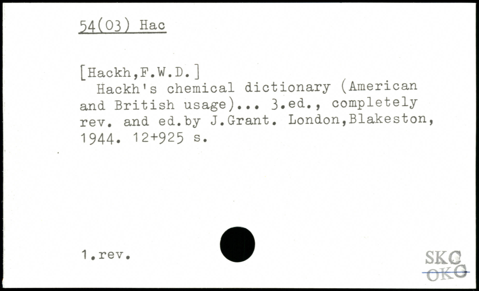 Hackh's chemical dictionary (American and British usage)...