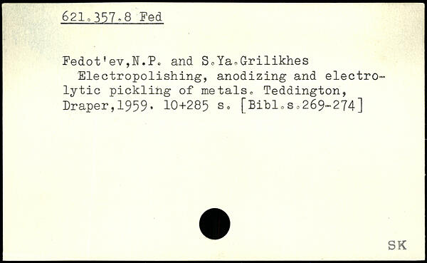 Fedot'ev,N.P. and SoYa.Grilikhes Electropolishing, anodizing and electrolytic pickling of metals.