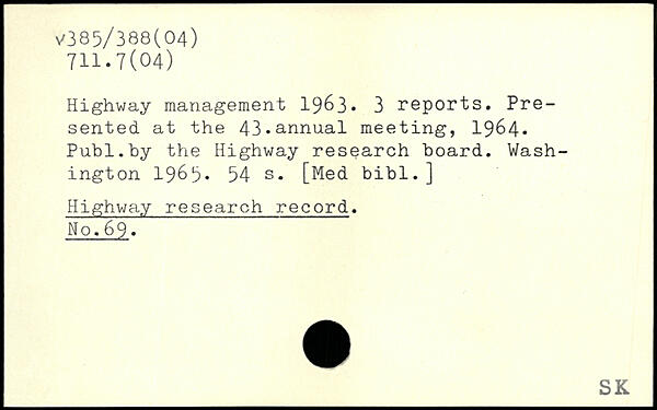 Highway management 19&3. 3 reports. Pre-sented at the 43.annual meeting, 1964.