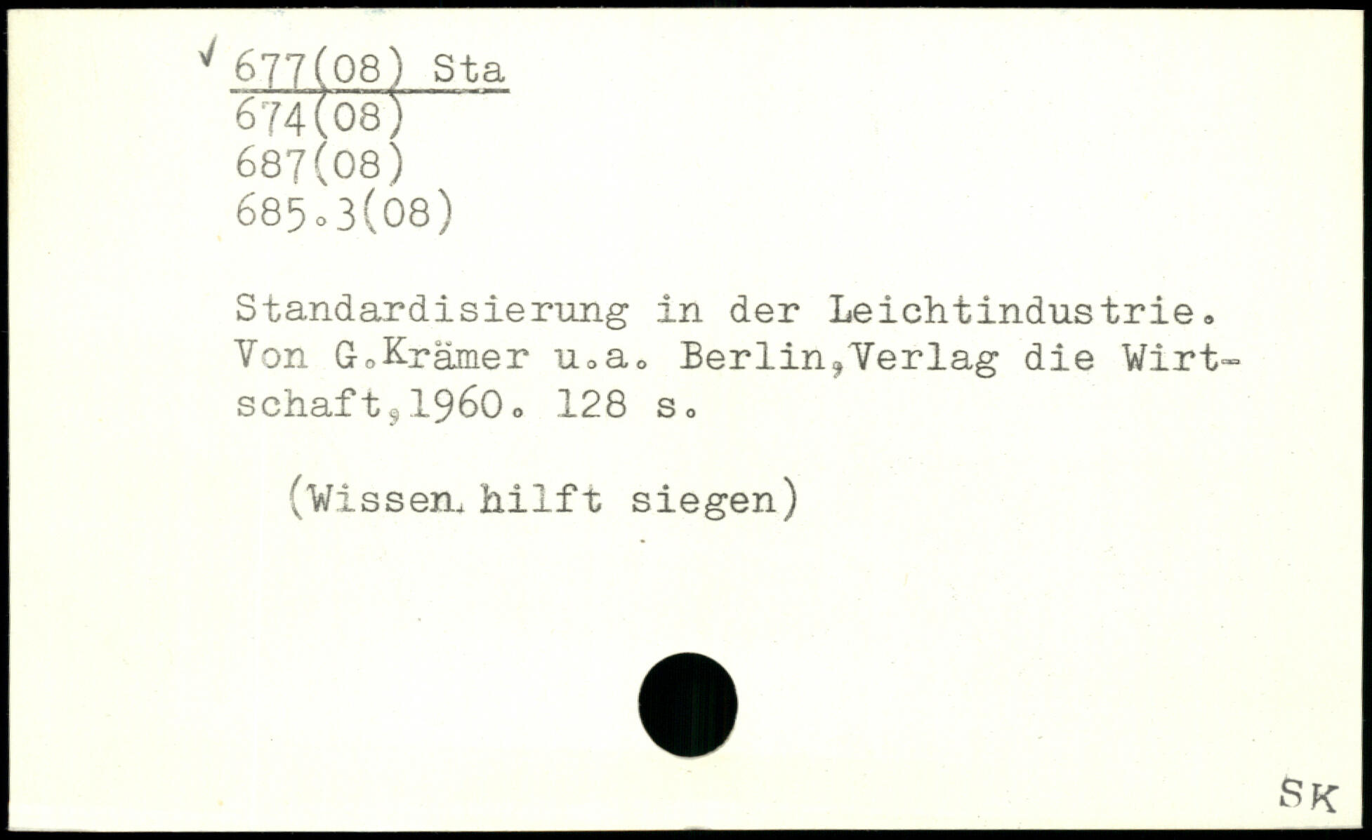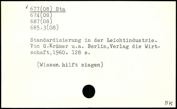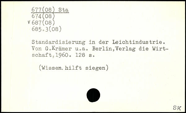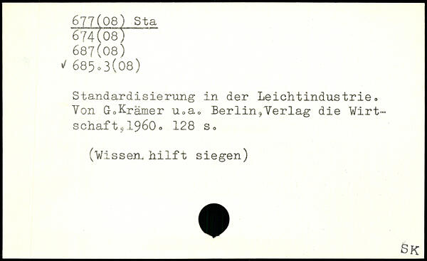 Standardisierung in der Leichtindustrie. Von GoKrämer u.a. Berlin,Verlag die Wirtschaft s1960.