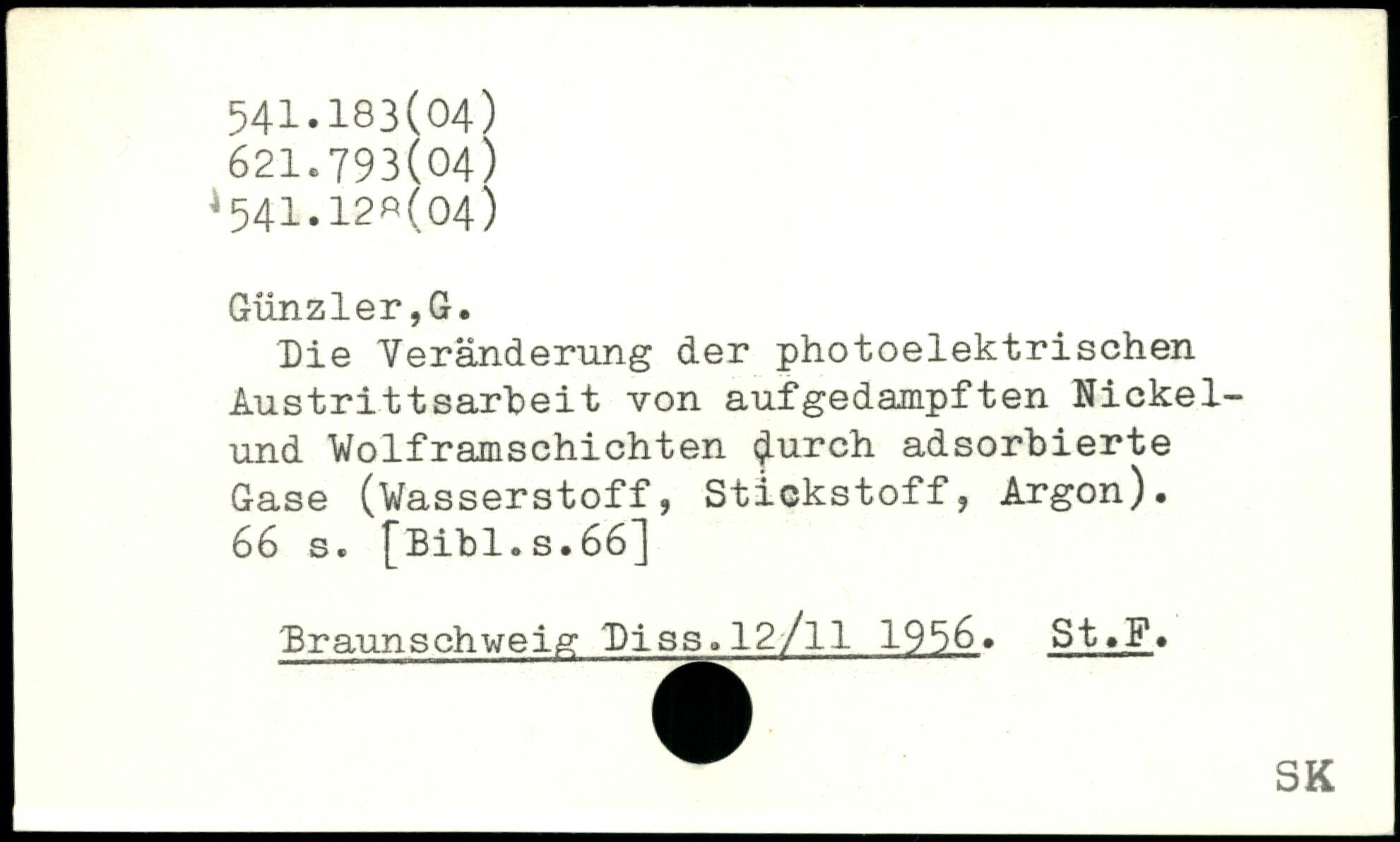 Die Veränderung der photoelektrischen Austrittsarbeit von aufgedampften Nickelund Wolframschichten $urch adsorbierte Gase (Wasserstoff, Stickstoff, Argon).