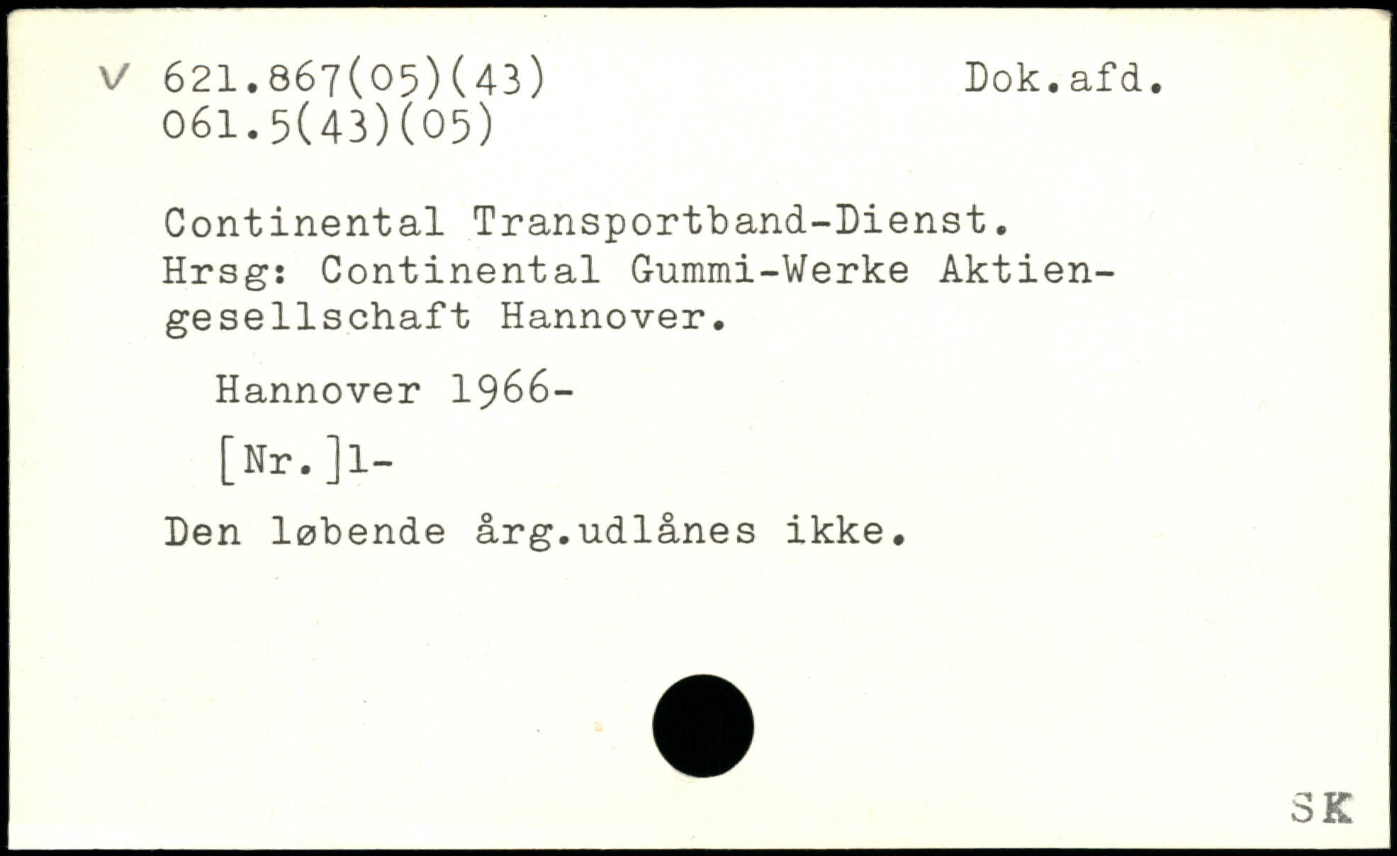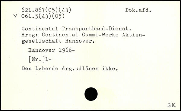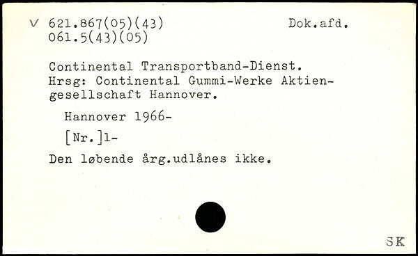 Continental Transportband-Dienst. Hrsg: Continental Gummi-Werke Aktiengesellschaft Hannover.