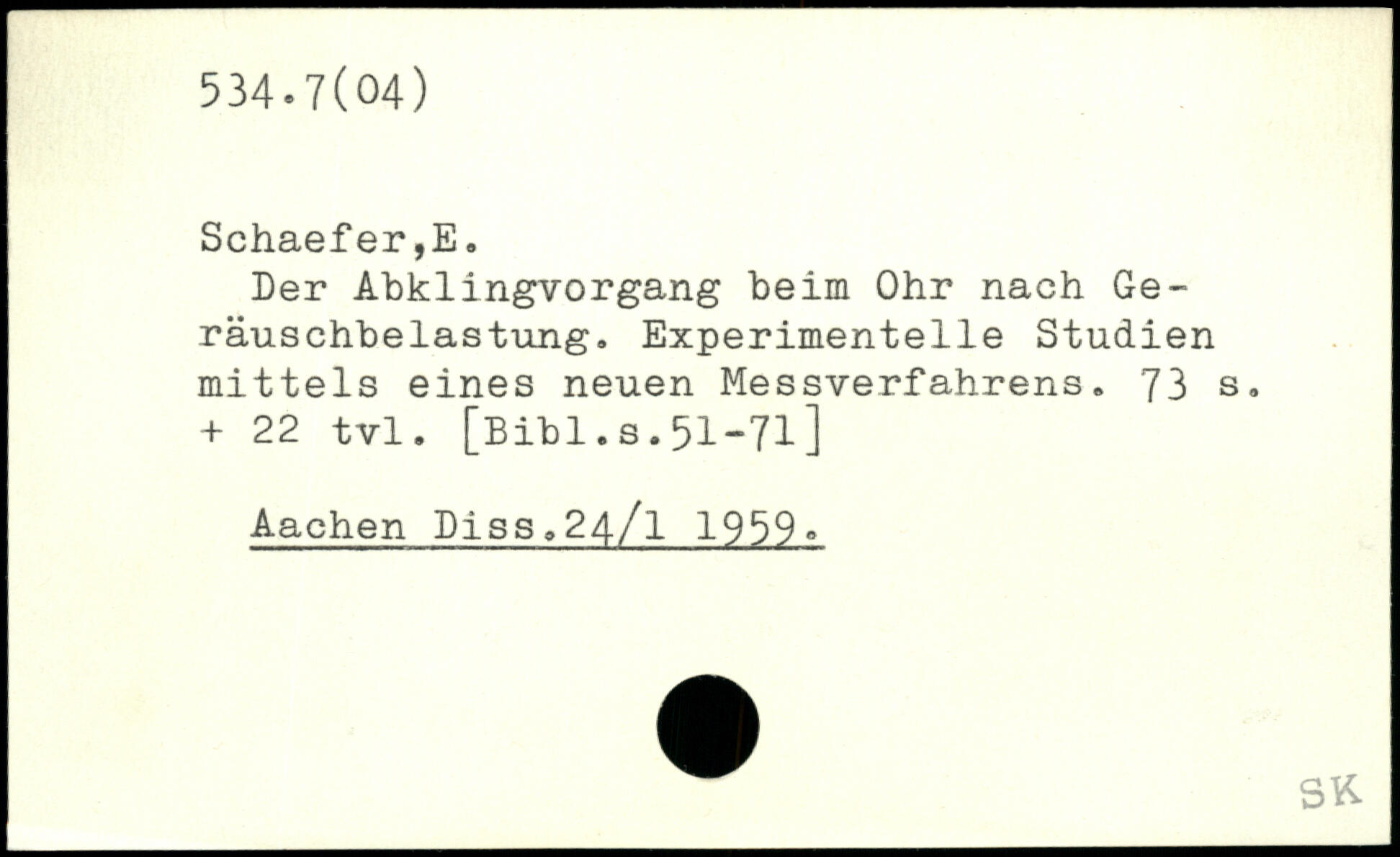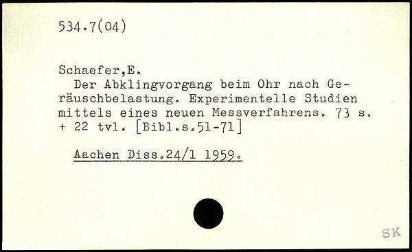 Der Abklingvorgang beim Ohr nach Geräuschbelastung. Experimentelle Studien mittels eines neuen Messverfahrens.