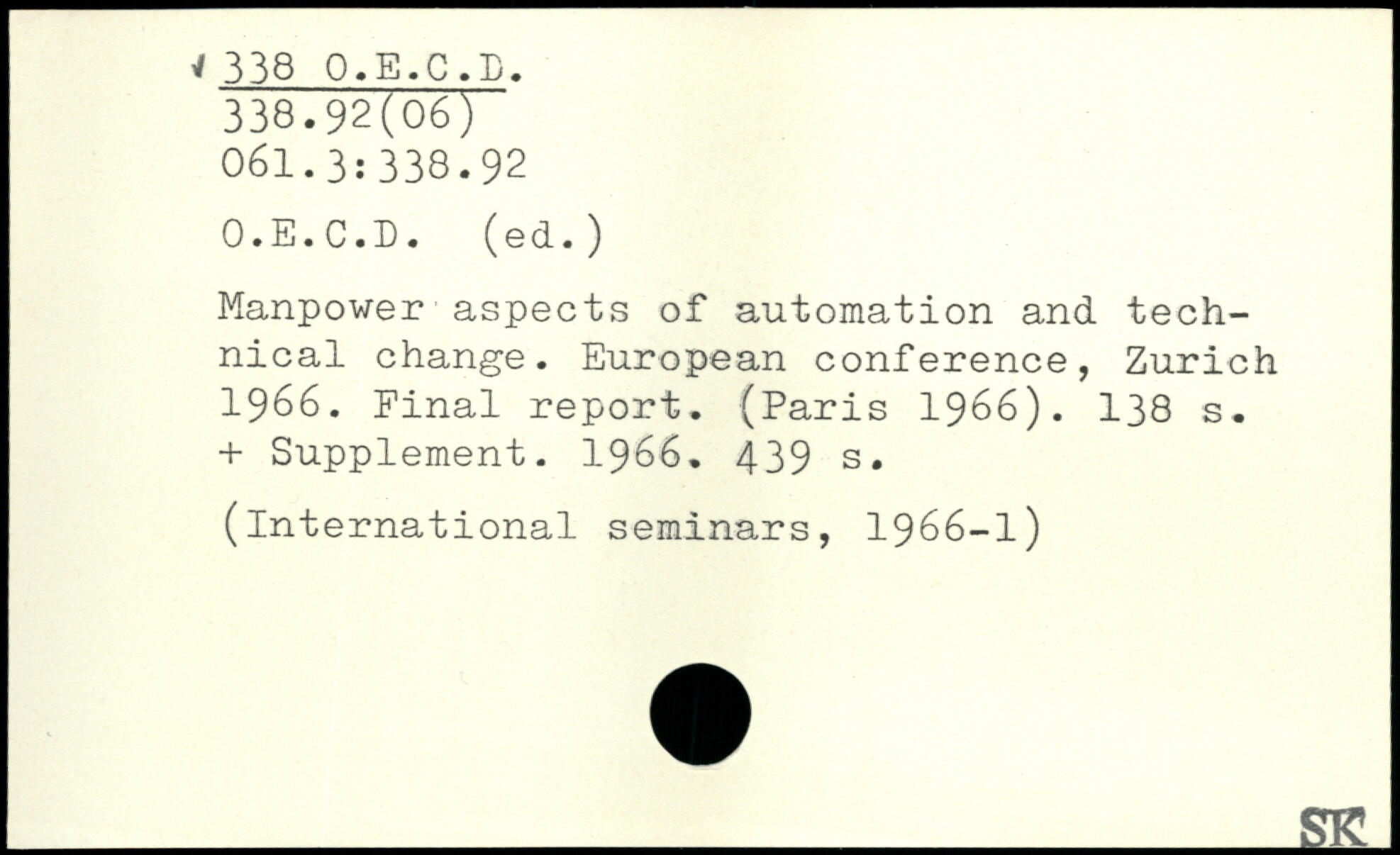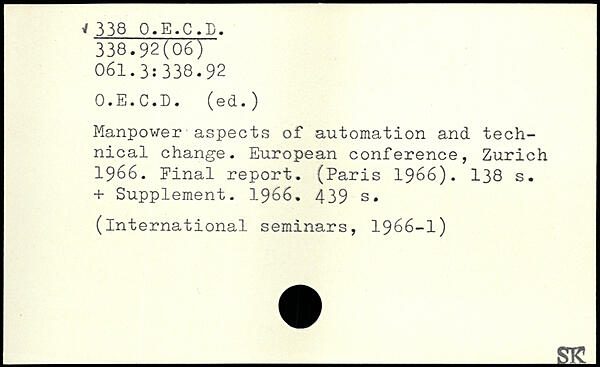 Manpower aspects of automation and technical change. European conference, Zurich 1966. Final report. (