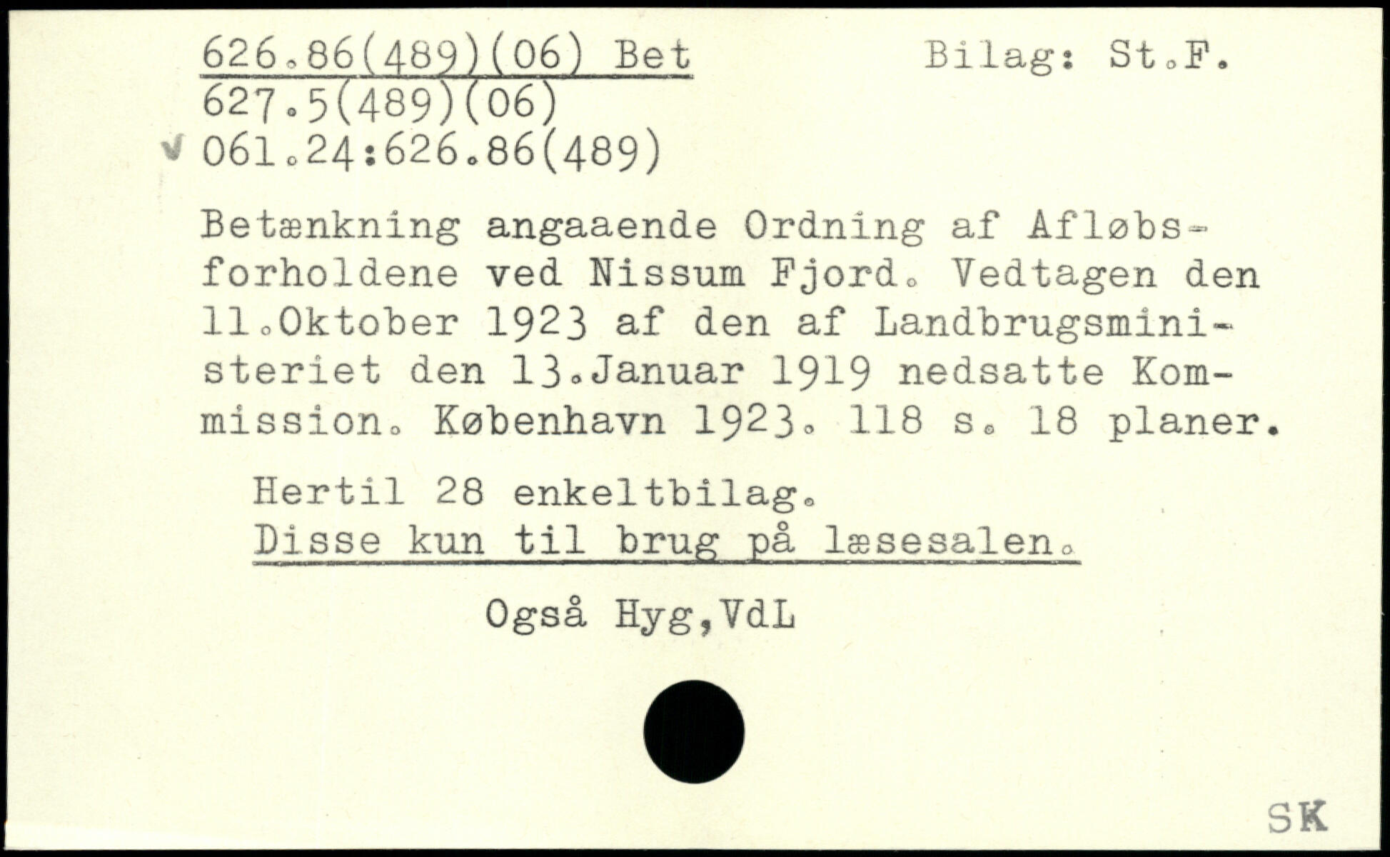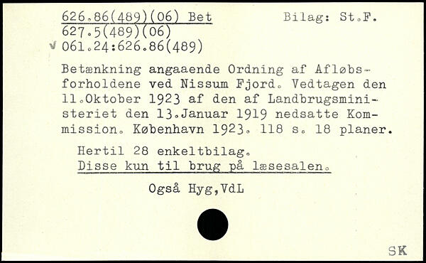Betænkning angaaende Ordning af Afløbsforholdene ved Nissum Fjordo Vedtagen den 11oOktober 1923 af den af Landbrugsministeriet den 13,Januar 1919 nedsatte Kom-mission.