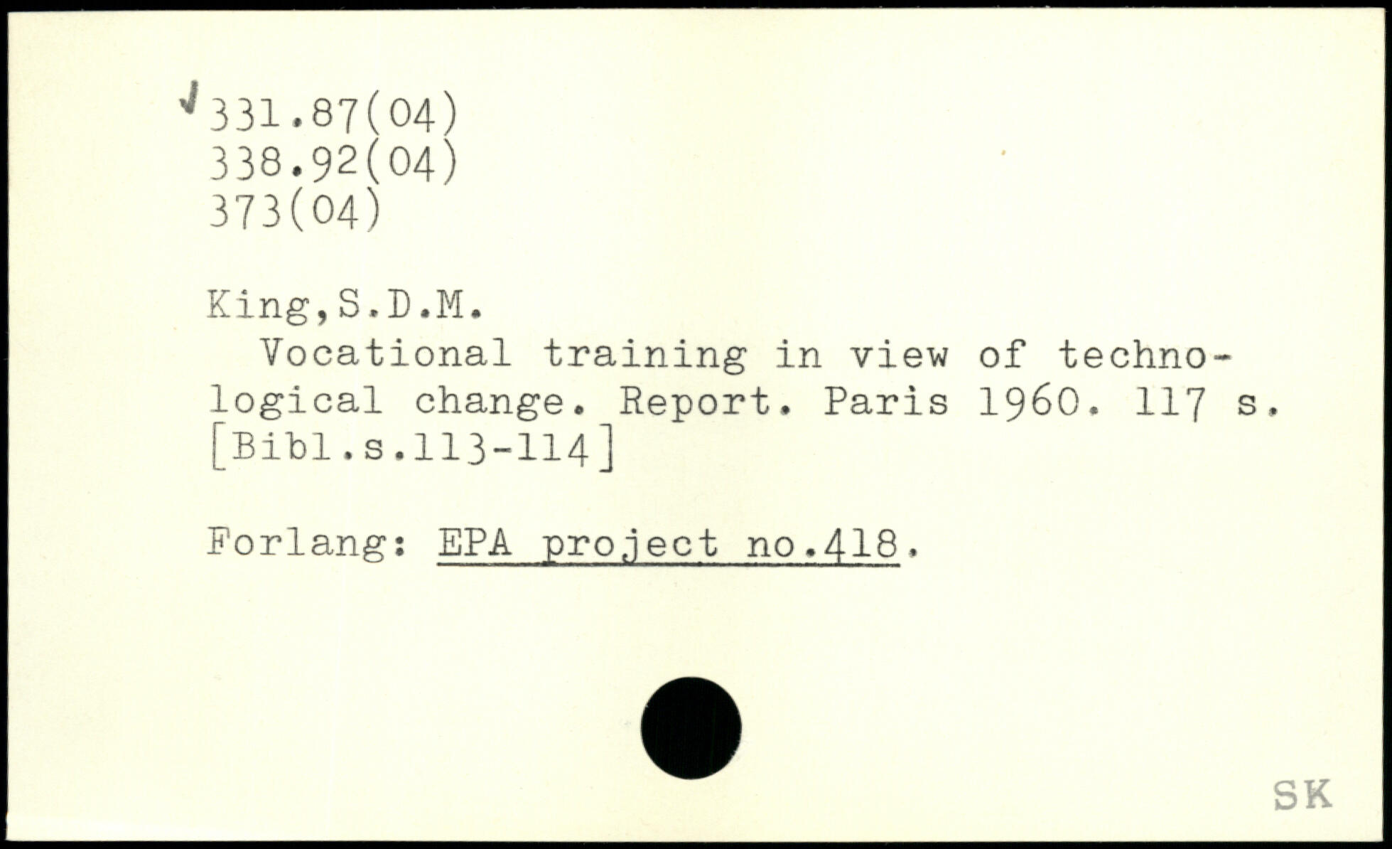 Vocational training in view of technological change. Report.