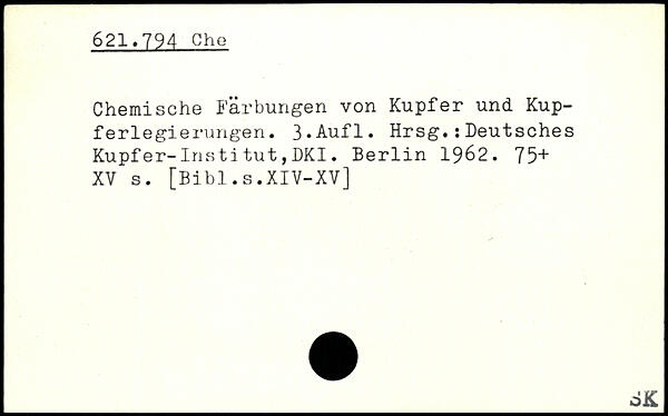 Chemische Färbungen von Kupfer und Kupferlegierungen.