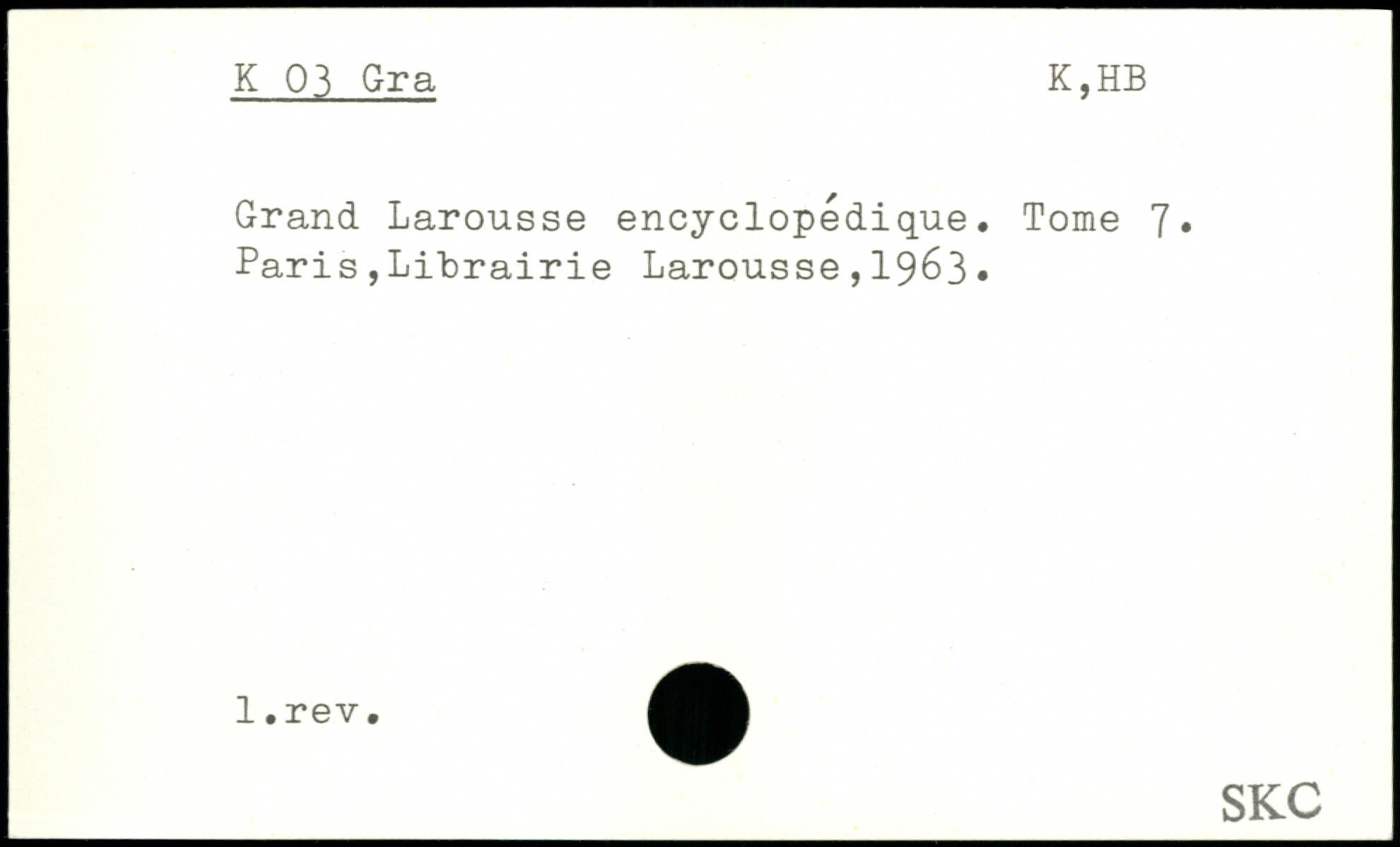 Grand Larousse encyclopédique. Tome 7, Paris,Librairie Larousse,19&3.