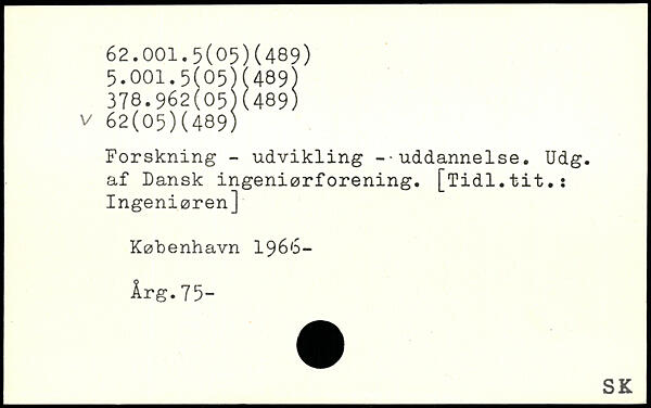 Forskning - udvikling --uddannelse. Udg. af Dansk ingeniørforening.