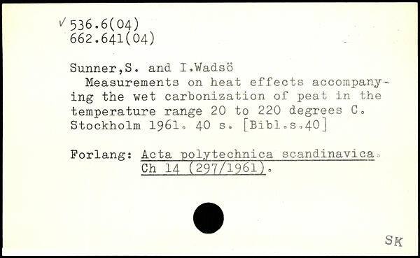 Measurements on heat effects accompanying the wet carbonization of peat in the temperature range 20 to 220 degrees Co