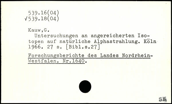 Untersuchungen an angereicherten Isotopen auf natürliche Alphastrahlung.