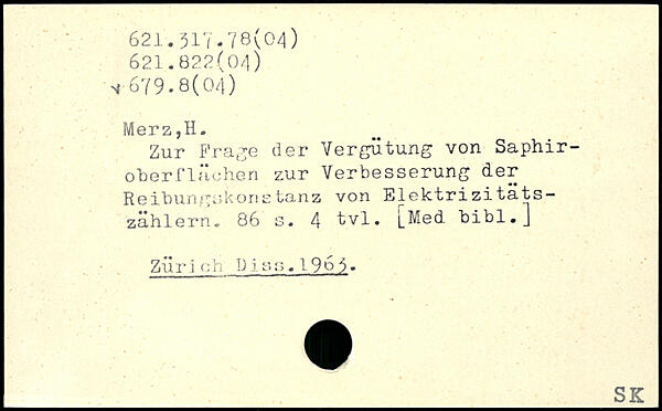 Zur Frage der Vergütung von Saphiroberflächen zur Verbesserung der Reibungckonstanz von Elektrizitätszählern.