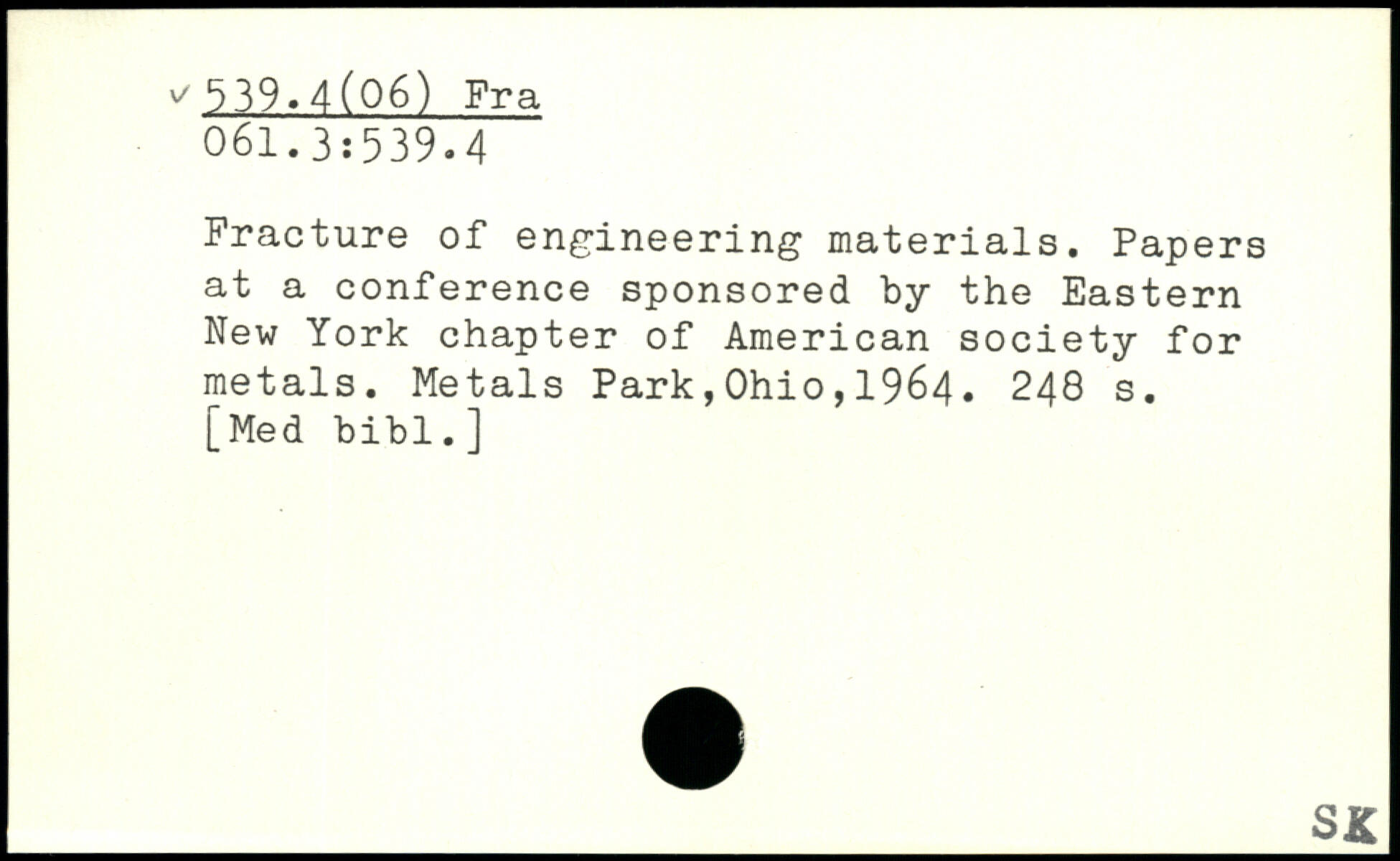 Fracture of engineering materials. Papers at a conference sponsored by the Eastern New York chapter of American society for metals.