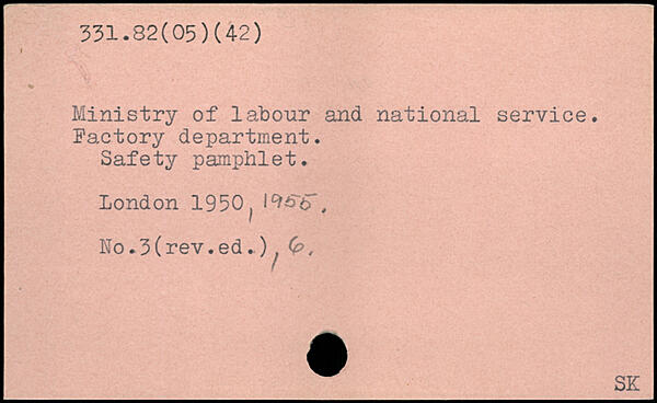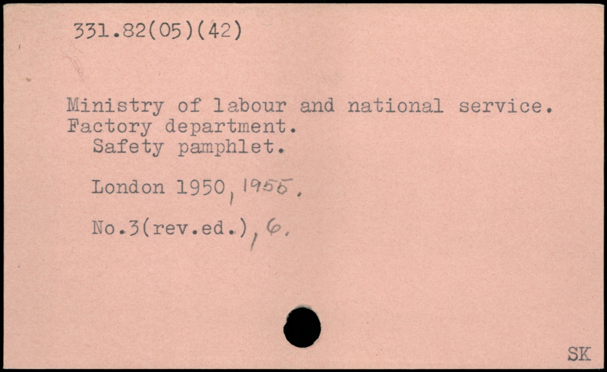 Ministry of labour and national service. Factory department. Safety pamphlet.